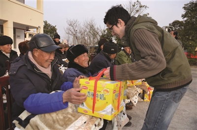 徐瑞志在給老人發(fā)放牛奶、毛毯。 張耀西 攝春節(jié)前夕,泗陽縣城廂 ... [更多詳細(xì)]