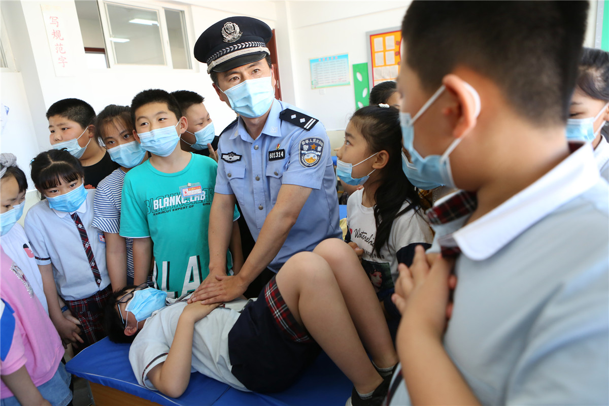 圖為6月22日,遼寧省東港市公安局前陽派出所民警在為學生演示溺水的救護方法。 暑假即將到來之際,遼寧省東港市公安局前陽派出所民警走進轄區學校開展主題為&l ... [更多詳細]