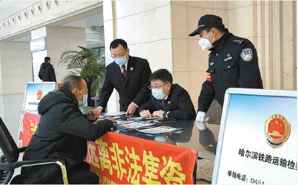 近日,黑龍江省檢察院哈爾濱鐵路運輸分院、哈爾濱鐵路運輸檢察院在哈爾濱火車站聯合開展防范非法集資宣傳活動。檢察干警通過發放宣傳資料、設立法律 ... [更多詳細]