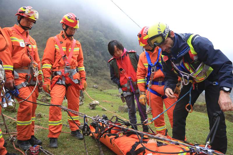 首次——外國“和尚”來念山地救援經(jīng)。本次活動邀請了2名法國國家憲兵登山和滑雪培訓(xùn)中心的山岳救援專家為我市各縣區(qū)消防部隊的24名骨干進行培訓(xùn)。培訓(xùn)內(nèi)容以山地救援中涉及的繩索使用操作、救援裝備使用操作、巖壁救援技術(shù)、索道救援技術(shù)等科目為主。消防支隊趙璐支隊長表示:“近年來,我市地震等自然災(zāi)害頻發(fā)、山岳救援任務(wù)繁重,野外探險登山活動也日益頻繁。我市山岳救援特別是消防部隊救援任務(wù)越來越重,這就要求救援人員具備專業(yè)的高空救援和復(fù)雜的山岳地形救援能力。此次消防支隊抓住中法實施警務(wù)合作計劃的機遇,主動邀請全球領(lǐng)先的法國憲兵山岳救援專家來昭進行全面系統(tǒng)培訓(xùn),是我市首次邀請外國救援專家來昭培訓(xùn)。目的就是要昭通消防部隊學(xué)習(xí)法國山岳救援技術(shù)之長,補齊自身技術(shù)短板,形成一套系統(tǒng)的山岳救援體系。”
