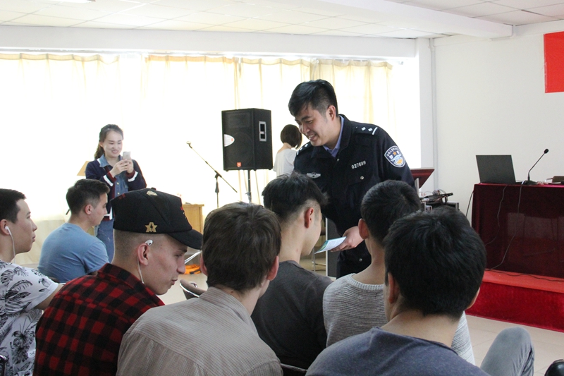 課堂上,民警首先播放了幾段事故監控視頻,分析了事故發生原因,以此提醒廣大留學生要遵守中國交通法規,就當前的交通形勢,特別是對酒駕、無證駕駛摩托車等違法行為做出了重點講解,勸導留學生不要酒后駕駛、無證駕駛,讓學生們提高自我保護意識,遵章出行,避免交通事故的發生。
