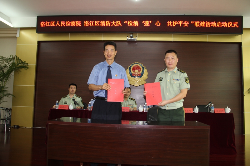 當天,洛江區消防大隊宣讀了《關于開展“檢消‘蓮’心?共護平安”聯建活動的意見》。雙方共同簽署了《洛江區人民檢察院 洛江區公安消防大隊關于共建“檢察官工作室”的協議書》。同時雙方為“洛江區人民檢察院派駐洛江區公安消防大隊檢察官工作室”揭牌。