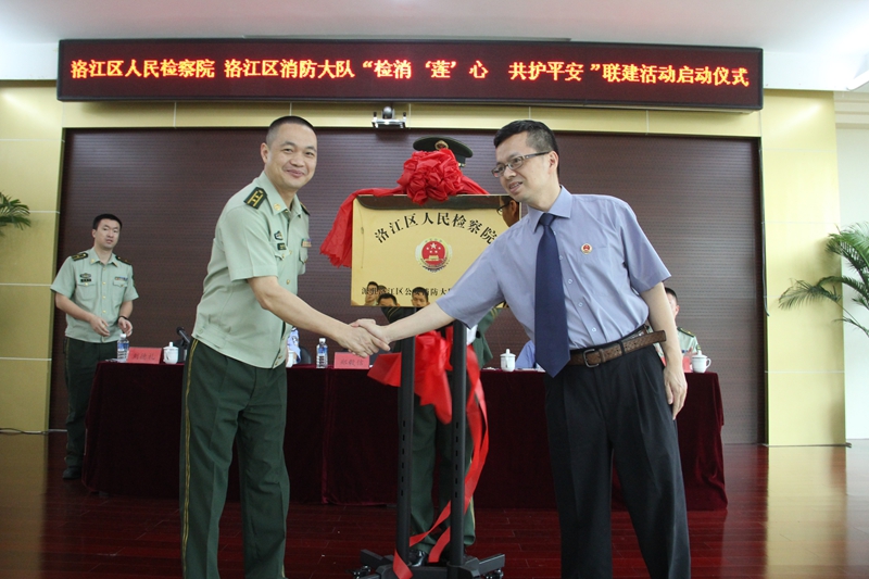 6月14日上午, 福建泉州洛江區人民檢察院聯合洛江區消防大隊開展“檢消‘蓮’心 共護平安”聯建活動啟動儀式,標志著洛江區“檢察官工作室”正式入駐消防大隊。