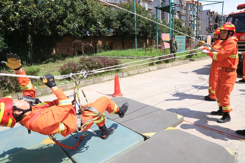 隨后,各參賽隊立即投入到了緊張有序的比賽中,先后進行了水域繩索橫渡救人操、橡皮艇組裝操和山岳救助科目上升與下降等比武項目。期間,支隊長等黨委成員全程觀看比賽,向各參賽隊員親自示范、指導(dǎo)各項比賽規(guī)則,對各參賽隊員給予了極大的鼓舞。