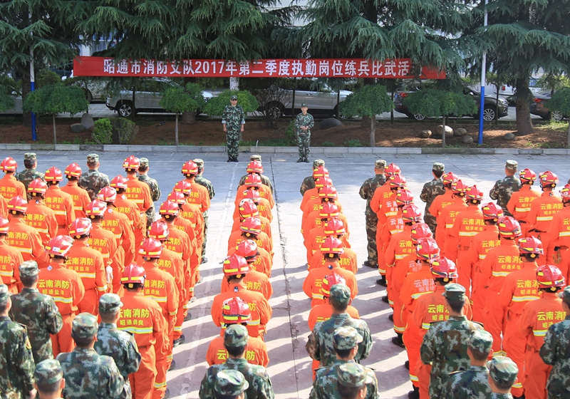 近日,云南昭通市消防支隊2017年第二季度執(zhí)勤崗位練兵比武競賽拉開序幕,實時檢驗官兵夏季練兵基礎(chǔ)素質(zhì)、戰(zhàn)訓(xùn)基礎(chǔ)工作和部隊實戰(zhàn)能力。