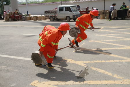培訓中,針對各單位微型消防站現有器材,消防人員通過講解示范與實踐相結合的方式,認真向微型消防站義務消防員傳授消防員防護服的穿戴方法、保養注意事項,水帶水槍基本性能參數,水帶鋪設、收整方法,射水姿勢等基本技能,并組織每名義務消防員進行實踐操作,反復糾正他們在操作過程中每個動作和細節。培訓中,消防人員還就如何加強器材維護保養、提高技能水平、組織開展教育培訓、增強全員消防安全意識等方面向重點單位微型消防站負責人提出了意見和建議。