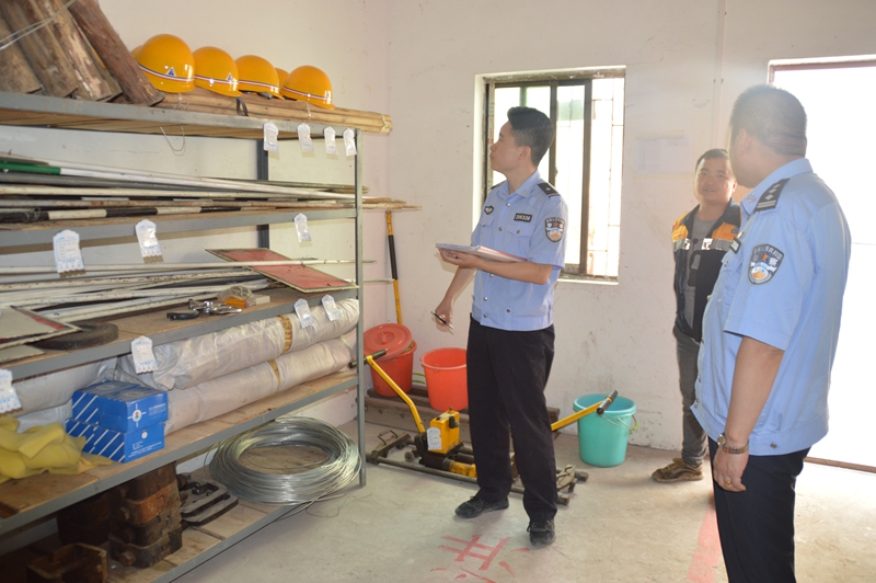 民警檢查倉庫易燃場所