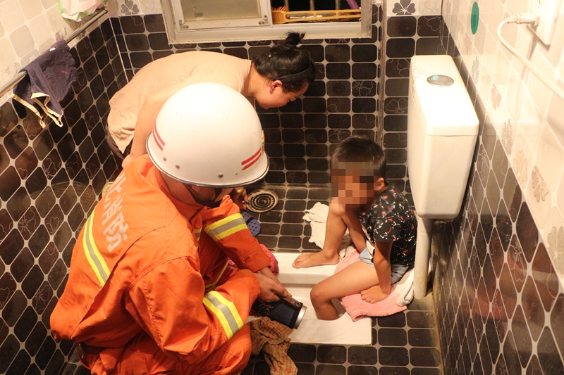 8月1日23時49分,湖北荊州監利縣三洲鎮加油站旁一棟居民樓內,有一名5歲左右的小男孩在上廁所時,不慎將腳卡進便池排水管內,無法取出,其父母在無奈之下,撥打防“119”報警求助。