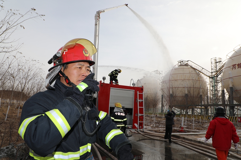 12月15日,寧夏中衛(wèi)市公安消防支隊(duì)在轄區(qū)寧夏紫光化工廠進(jìn)行實(shí)戰(zhàn)化滅火拉動演練。