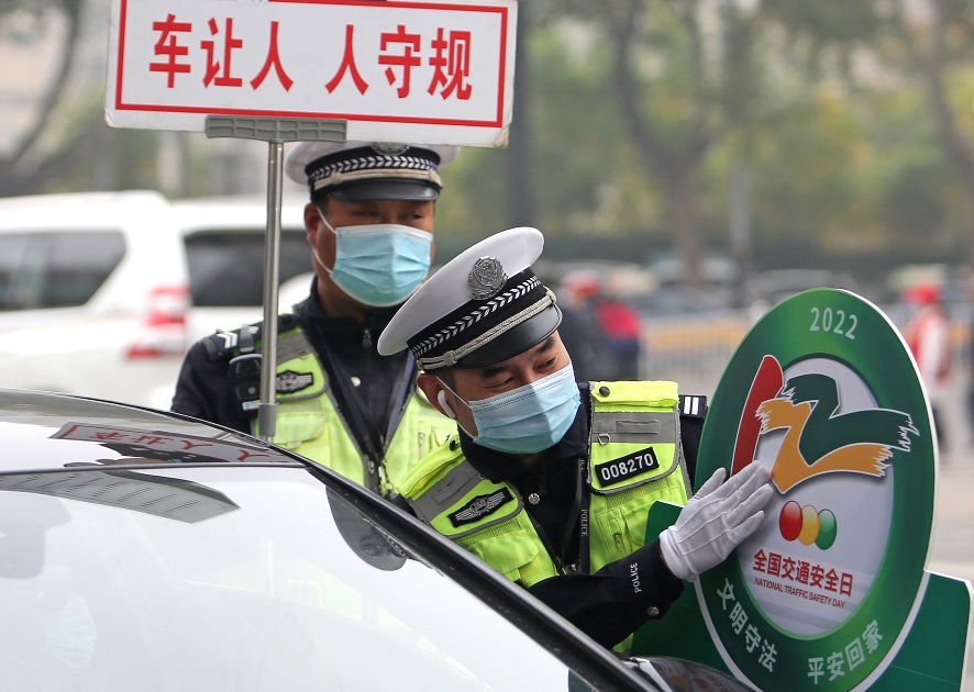 11月10日,陜西省渭南市前進路與朝陽大街十字,民警為禮讓行人的駕駛員點贊并贈送愛心禮物。當日,渭南市公安局交警支隊舉行&ldquo;文明守法、平安回家&rdqu ... [更多詳細]
