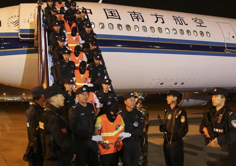 10月12日,在濟南遙墻國際機場,電信網絡詐騙犯罪嫌疑人被押解回國。陳路坤 攝  記者從山東省公安廳獲悉,隨著74名犯罪嫌疑人12日被從柬埔寨押解回國,涉及全 ... [更多詳細]