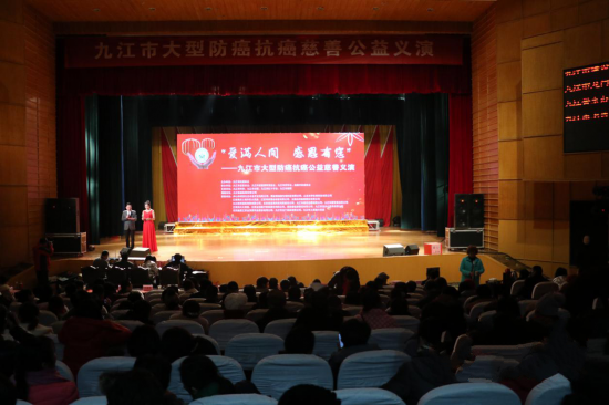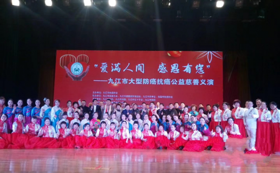 日前,由江西九江市抗癌協會主辦,九江市慈善總會、九江市愛國擁軍促進會、九江市藥學會、南昌市抗癌協會協辦的“愛滿人間,感恩有您”九江市大型防癌抗癌慈善公益義演在濂溪區文化館隆重舉行。九江市科協、九江市婦聯、九江市紅十字會、九江市殘聯、九江日報社、愛心企業代表及各界群眾、協會癌友等八百余人出席義演活動。