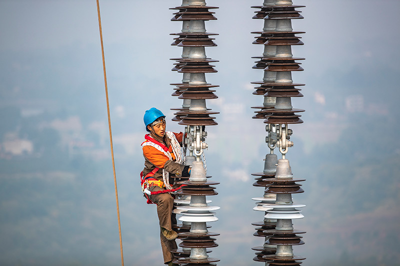 12月5日,在白鶴灘&mdash;江蘇&plusmn;800千伏特高壓直流輸電線路工程(重慶段)江津長江大跨越施工現場,工人在長江上空作業。當日,隨著跨江導線上最后一個附 ... [更多詳細]