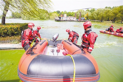 近日,受高溫天氣等因素影響,剛剛經歷過洪水的巢湖,藍藻快速生長,腐臭味嚴重。圖為工作人員準備對巢湖水面上的藍藻進行打撈、清理。 ... [更多詳細]