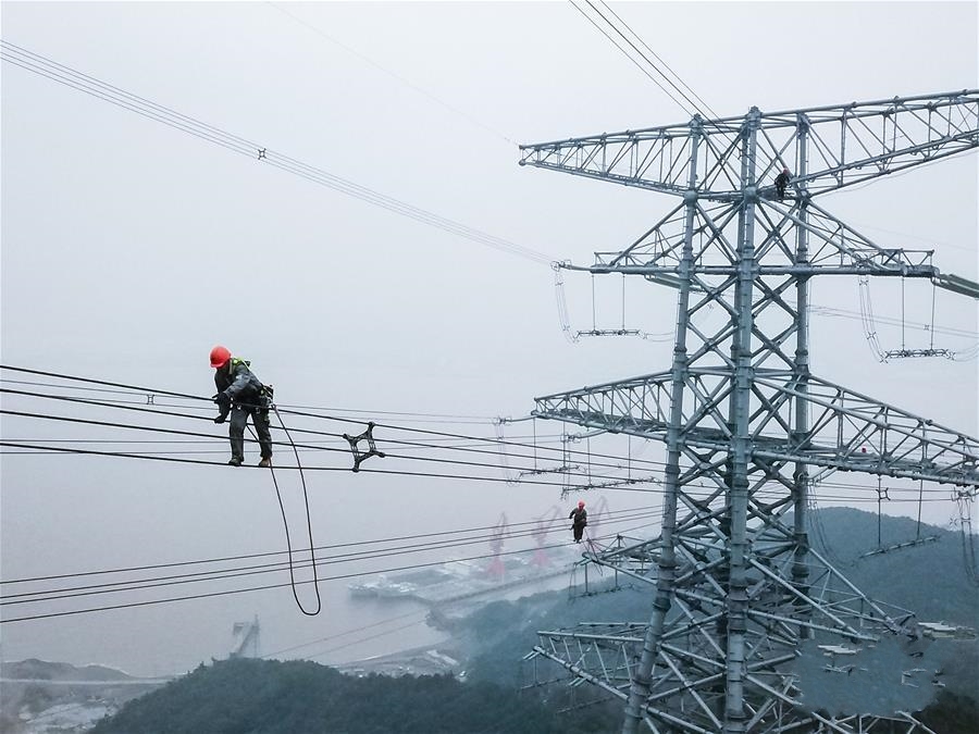10月24日,檢修人員在跨海輸電高塔上進行檢修工作(無人機照片)。 近期,浙江省國網舟山供電公司組織人員對浙江舟山500千伏聯網輸電線路洛遠線進行綜合 ... [更多詳細]