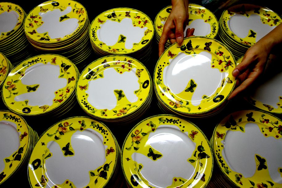 6月25日,河北省邯鄲市峰峰礦區(qū)裕行陶瓷有限公司工人在查驗陶瓷白坯質(zhì)量。河北省邯鄲市峰峰礦區(qū)盛產(chǎn)陶瓷,全區(qū)目前擁有陶瓷企業(yè)90余家,從業(yè)人員2萬多人,主要產(chǎn)品有日用陶瓷、藝術(shù)陶瓷、建筑陶瓷等。隨著“一帶一路”倡議的推進,峰峰礦區(qū)陶瓷產(chǎn)業(yè)迎來新的發(fā)展機遇。目前該區(qū)年出口陶瓷1.2億件,產(chǎn)品暢銷東南亞、中東等地區(qū)。
