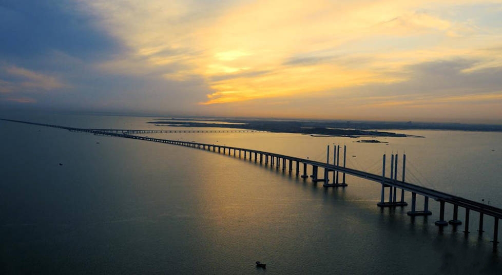 青島海灣大橋位于膠州灣,又稱膠州灣跨海大橋,是中國北方冰凍海區域首座特大型橋梁集群工程,是已建成通車的世界最長跨海大橋。大橋連接青島東、西兩個主要城區,全長36.48公里。