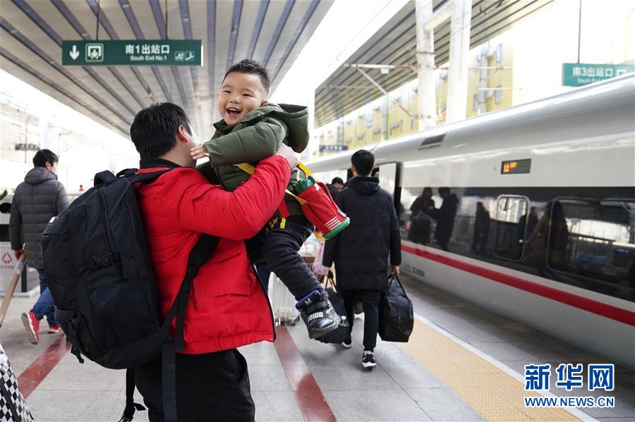2月1日,在北京西站,一位旅客抱起小朋友準(zhǔn)備乘坐G557次列車。 2018年春運(yùn)于12日順利結(jié)束。來自交通運(yùn)輸部的初步統(tǒng)計顯示,春運(yùn)40天,全國旅客發(fā)送量約29.7億人次,與去年基本持平。交通運(yùn)輸部有關(guān)負(fù)責(zé)人表示,春運(yùn)期間,全國運(yùn)輸能力總體適應(yīng),群眾“一票難求”問題進(jìn)一步緩解,煤炭、天然氣、肉禽、蔬菜等重點(diǎn)物資運(yùn)輸總體有序。鐵路在正常運(yùn)力基礎(chǔ)上,每天增加直通臨客287對,夜間臨時動車組88.5對;公路投入客車84萬輛、2100余萬客位;水路投入船舶2萬余艘、100余萬客位;民航安排加班計劃5166班,夜間航班1萬余個。