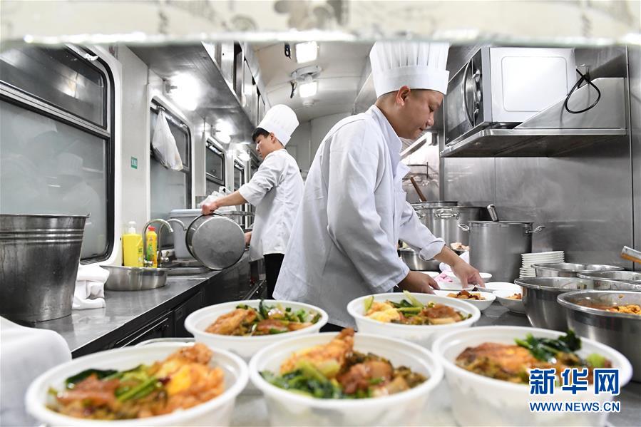 2月8日,中國鐵路南昌局集團(tuán)有限公司福州客運(yùn)段餐車廚師在K46次列車上工作。 2018年春運(yùn)于12日順利結(jié)束。來自交通運(yùn)輸部的初步統(tǒng)計顯示,春運(yùn)40天,全國旅客發(fā)送量約29.7億人次,與去年基本持平。交通運(yùn)輸部有關(guān)負(fù)責(zé)人表示,春運(yùn)期間,全國運(yùn)輸能力總體適應(yīng),群眾“一票難求”問題進(jìn)一步緩解,煤炭、天然氣、肉禽、蔬菜等重點(diǎn)物資運(yùn)輸總體有序。鐵路在正常運(yùn)力基礎(chǔ)上,每天增加直通臨客287對,夜間臨時動車組88.5對;公路投入客車84萬輛、2100余萬客位;水路投入船舶2萬余艘、100余萬客位;民航安排加班計劃5166班,夜間航班1萬余個。新華社記者 林善傳攝