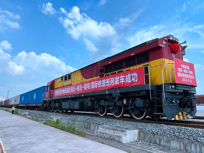中緬新通道(重慶&mdash;臨滄&mdash;緬甸)國際班列在渝首發。鄒樂攝 23日,中緬新通道(重慶&mdash;臨滄&mdash;緬甸)國際鐵路班列在重慶兩江新區果園港 ... [更多詳細]