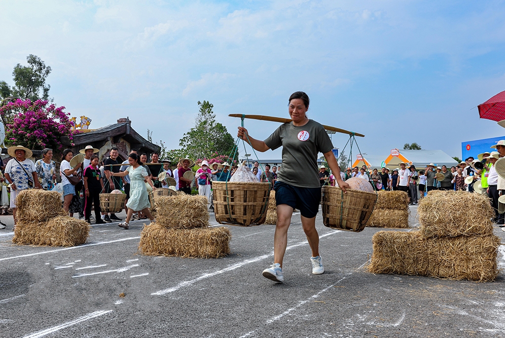 2024年9月20日,重慶市大足區(qū)拾萬鎮(zhèn)長虹村田間地頭熱鬧非凡,農(nóng)民們參與獨輪推推車、扁擔障礙賽、歡樂套圈、豐收搬運等項目,歡笑聲回蕩在金色的田園上。 ... [更多詳細]