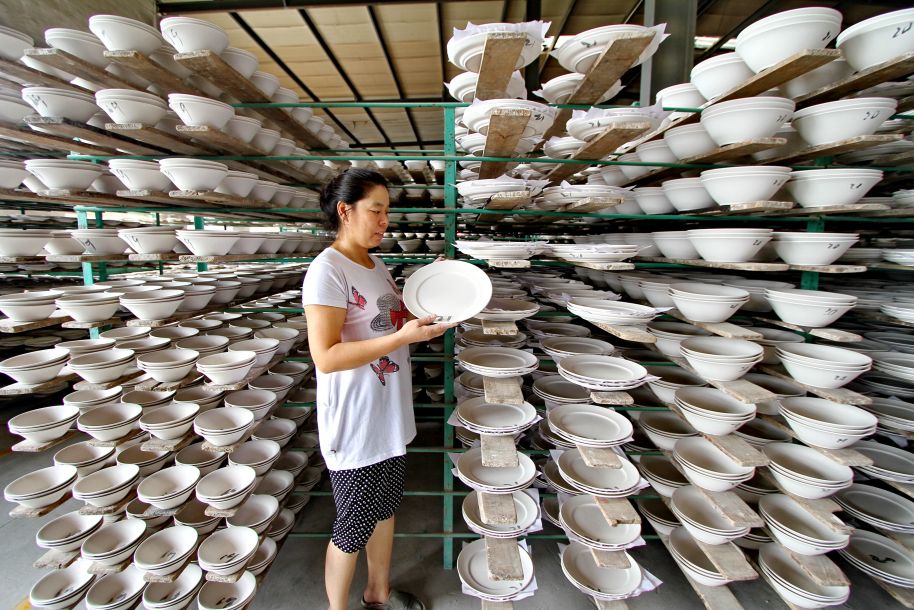 6月25日,河北省邯鄲市峰峰礦區(qū)裕行陶瓷有限公司工人在查驗陶瓷白坯質(zhì)量。河北省邯鄲市峰峰礦區(qū)盛產(chǎn)陶瓷,全區(qū)目前擁有陶瓷企業(yè)90余家,從業(yè)人員2萬多人,主要產(chǎn) ... [更多詳細(xì)]