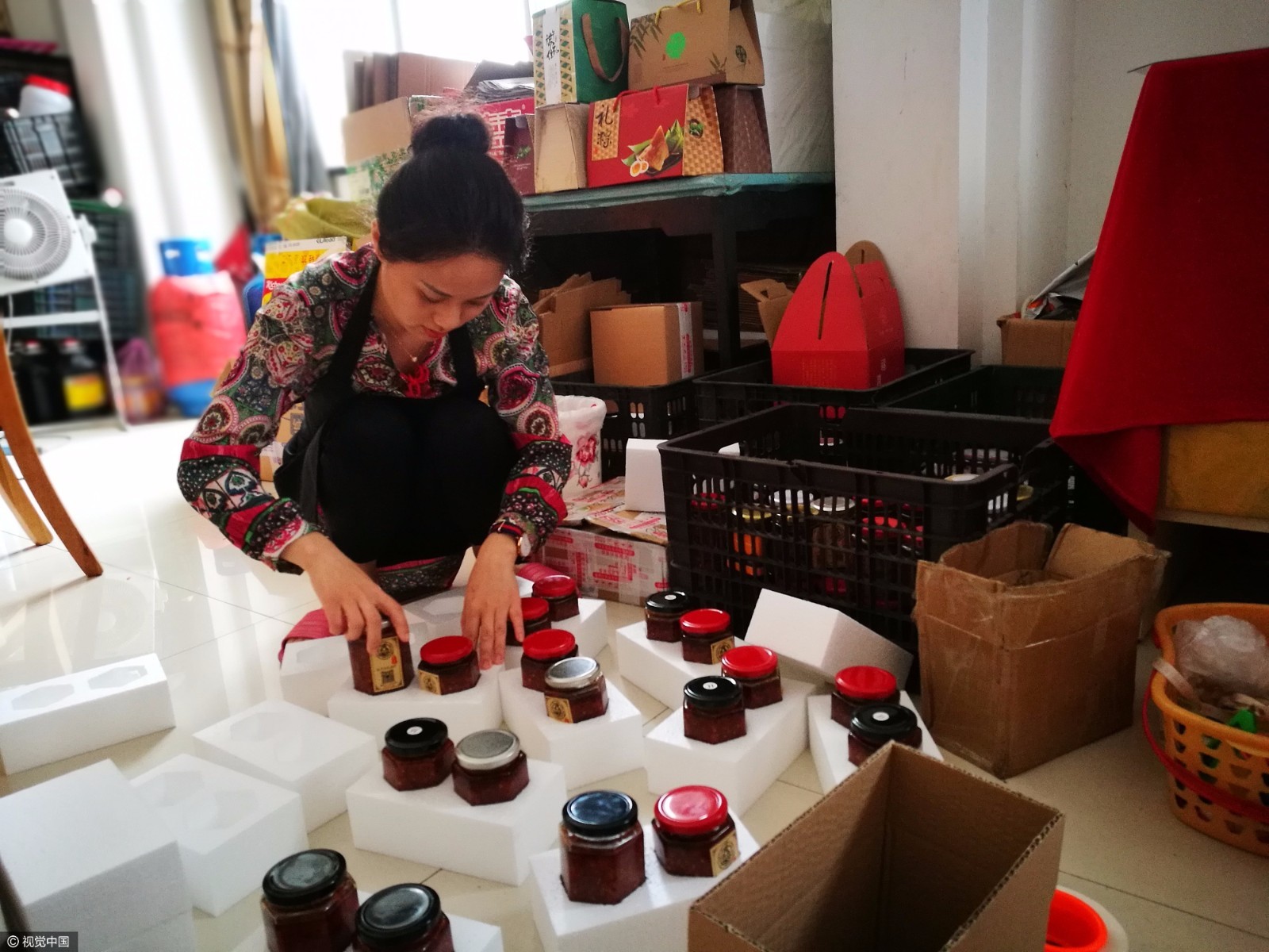 進入臘月后,籌備年貨的人開始多了起來,柴美娟的生意日漸紅火。僅靠微商賣鹵味辣醬的銷售額每天可以達到5000元左右。
