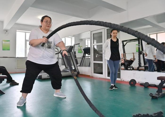 徐琴冉在運動。 張瑤 攝  來自河北的徐琴冉體重達346斤,身體多項指標超標,為了健康來到長春接受減肥治療。徐琴冉表示,她現在的心愿是減肥成功后好好陪伴兒 ... [更多詳細]