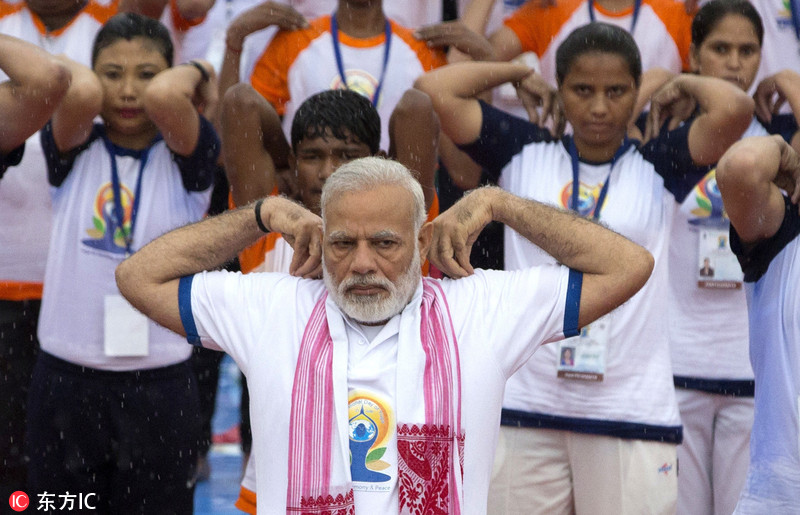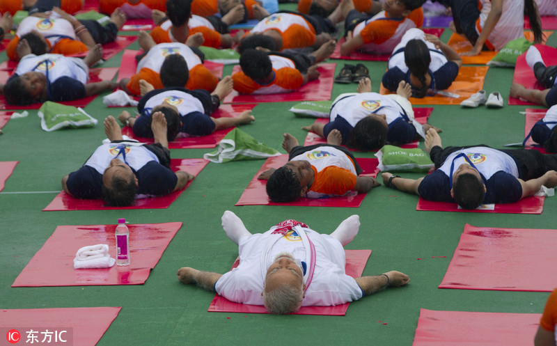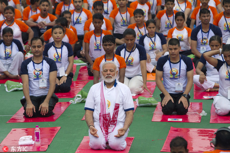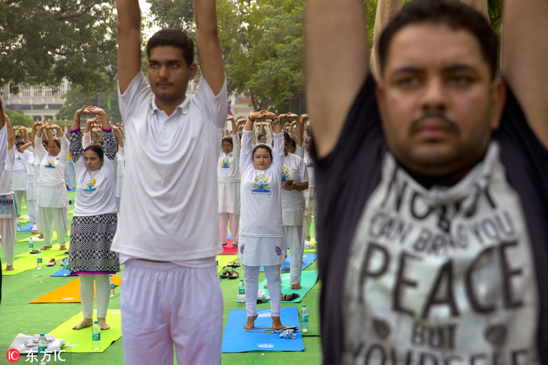 當地時間2017年6月21日,印度新德里,印度舉辦“萬人瑜伽”活動,慶祝世界瑜伽日。