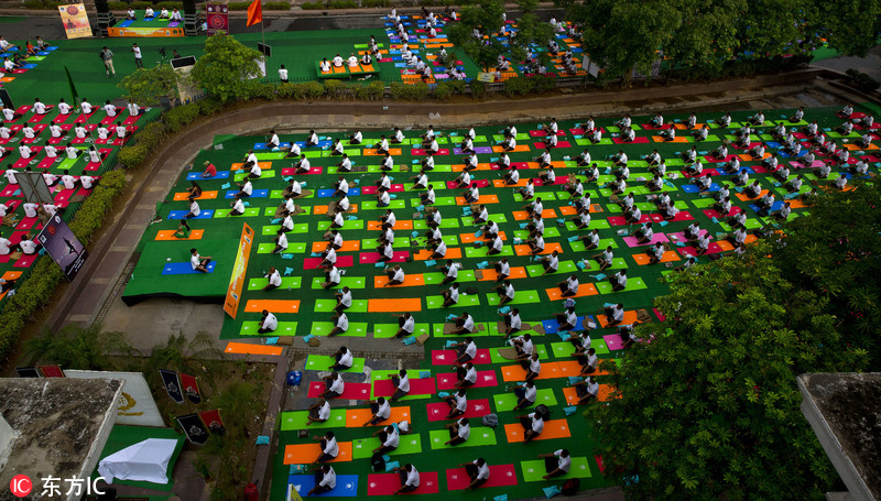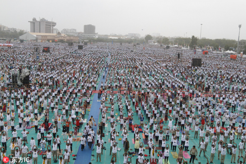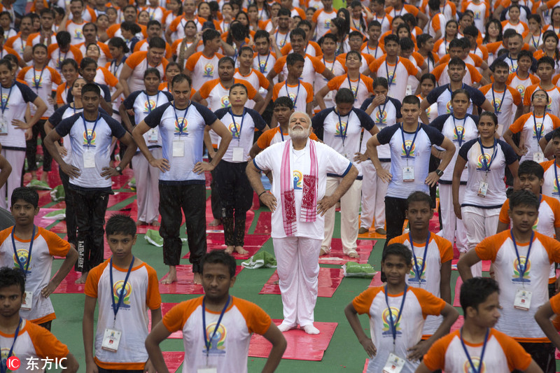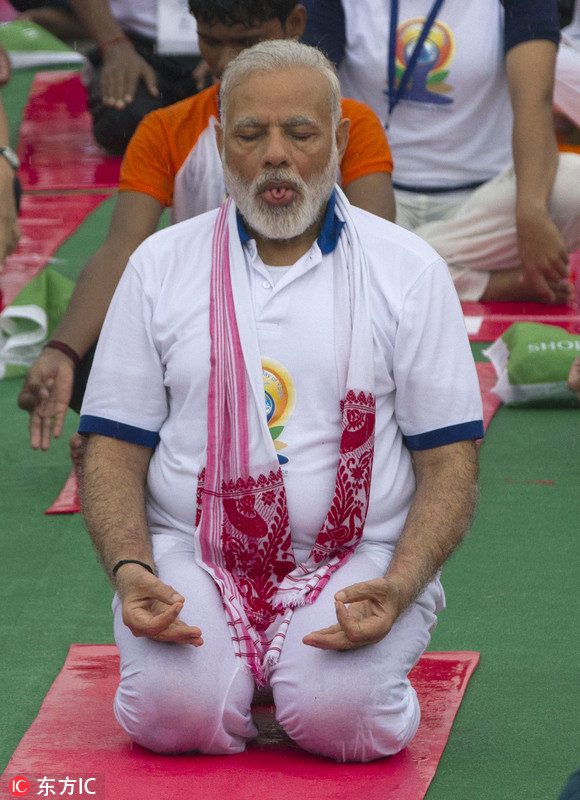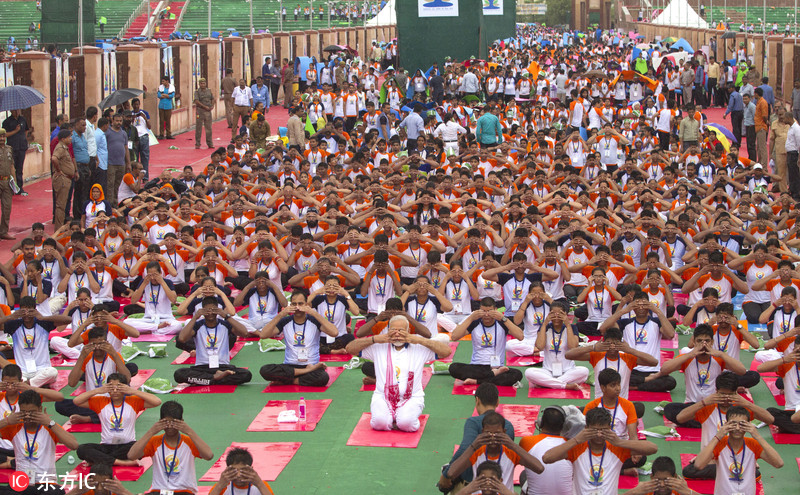 世界瑜伽日 印度總理莫迪率萬(wàn)人秀瑜伽