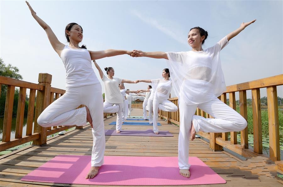 6月20日,河北省邯鄲市峰峰礦區(qū)的瑜伽愛(ài)好者在清泉公園練習(xí)瑜伽。  聯(lián)合國(guó)于2014年宣布6月21日為國(guó)際瑜伽日,旨在提高人們對(duì)于練習(xí)瑜伽可以帶來(lái)諸多益處 ... [更多詳細(xì)]