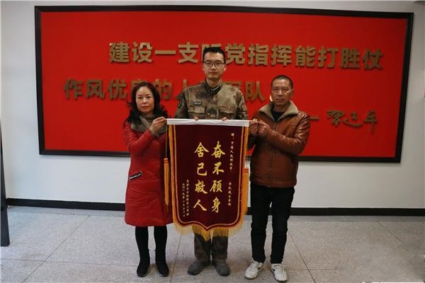寫有&ldquo;奮不顧身、舍己救人&rdquo;字樣的錦旗 1月20日晚,軍事科學(xué)院某部營(yíng)區(qū)來(lái)了兩名特殊的客人,他們向該部上士李鵬贈(zèng)送了寫有&ldquo;奮不顧身、舍己 ... [更多詳細(xì)]