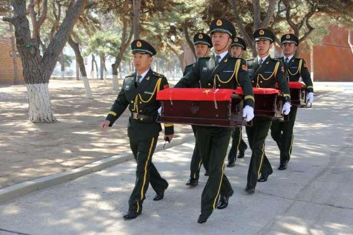 3月29日,禮兵在安葬儀式上護送志愿軍烈士遺骸棺槨。當日,第五批在韓中國人民志愿軍烈士遺骸在沈陽抗美援朝烈士陵園安葬。20位志愿軍烈士英靈60多年后回到祖國 ... [更多詳細]