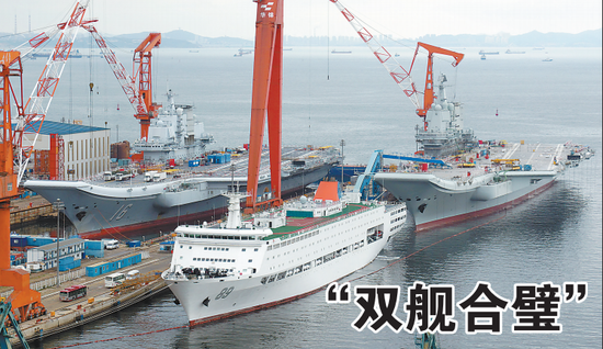 10日,當天清晨,中國首艘航母遼寧艦在濛濛細雨中接替國產航母進入大連造船廠的船塢進行維修。中國兩大航母首次在大連造船廠內同向并列,呈現出氣勢恢弘的&ldq ... [更多詳細]