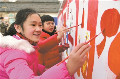 春節(jié)期間,江蘇省鎮(zhèn)江市金山街道黑橋社區(qū)聯(lián)合江蘇大學(xué)志愿者開展&ldquo;墻繪民俗迎新年&rdquo;活動,志愿者指導(dǎo)小朋友在小區(qū)的墻上用兒童畫、漫畫繪制春節(jié)民俗 ... [更多詳細]