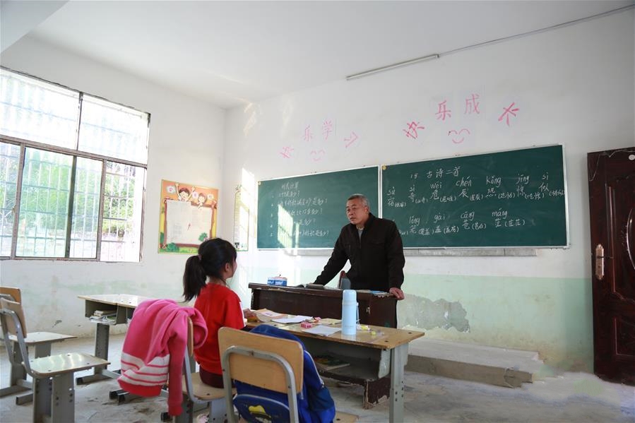 11月29日,在湖南省永州市冷水灘區(qū)黃陽(yáng)司鎮(zhèn)天里坪村小學(xué)教學(xué)點(diǎn),55歲的唐炳元在給7歲的陳宏薈上課,該教學(xué)點(diǎn)只有一名老師一名學(xué)生。 55歲的唐炳元已是滿頭白發(fā) ... [更多詳細(xì)]
