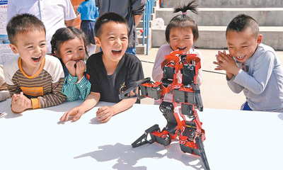 5月24日,小朋友被一款機(jī)器人科普展品吸引。楊昕攝(影像中國(guó))  當(dāng)日,甘肅省平?jīng)鍪锌萍蓟顒?dòng)周&ldquo;科技大篷車&rdquo;主題活動(dòng)走進(jìn)平?jīng)鍪械谑袑W(xué)。豐富的 ... [更多詳細(xì)]