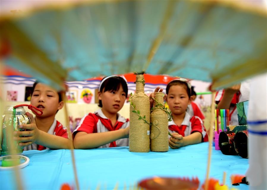 6月4日,河北省衡水市冀州區(qū)信都學校的學生展示用廢棄瓶蓋和飲料桶制作的手工作品。當日,河北省衡水市冀州區(qū)信都學校開展&ldquo;變廢為寶&rdquo;創(chuàng)意活動, ... [更多詳細]