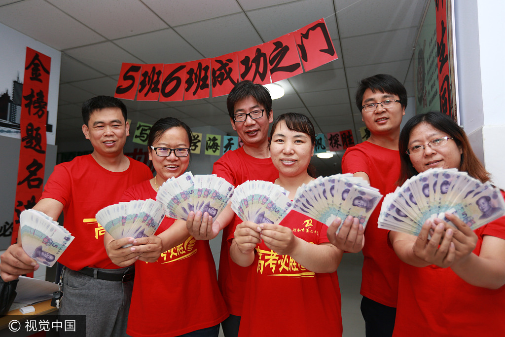 2017年6月3日,河北衡水二中的高三老師們展示為每位備戰(zhàn)高考的學(xué)生準(zhǔn)備的兩張5元嶄新連號(hào)人民幣。 ... [更多詳細(xì)]