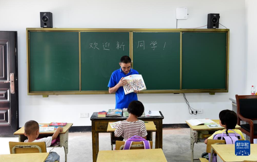 在菥荻教學點,許新民給學生們上課(9月1日攝)! “不帐⌒鞘袥芸h桃花潭鎮厚岸學校菥荻教學點坐落于大山深處,年逾六旬的許新民是教學點唯一的一名老師 ... [更多詳細]
