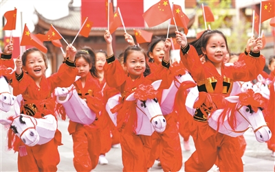 ① 9月29日,在浙江省長興縣東魚坊歷史文化街區(qū),娃娃們手舉五星紅旗,歡跳馬燈舞。譚云俸 攝② 9月30日,青海省囊謙縣東壩中心寄宿學校教師桑丁卓瑪為學生講民 ... [更多詳細]