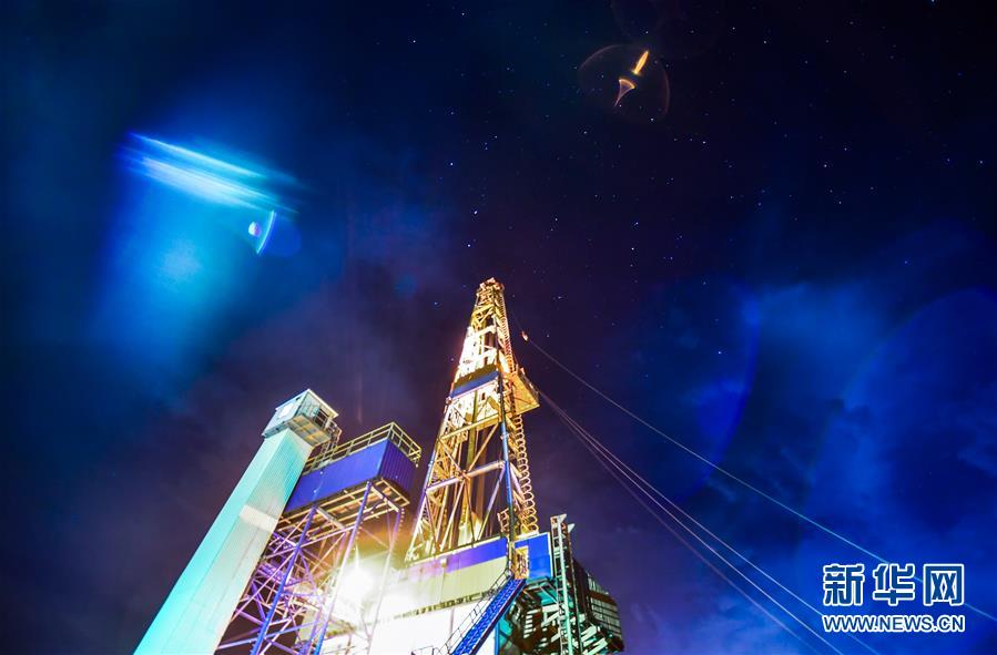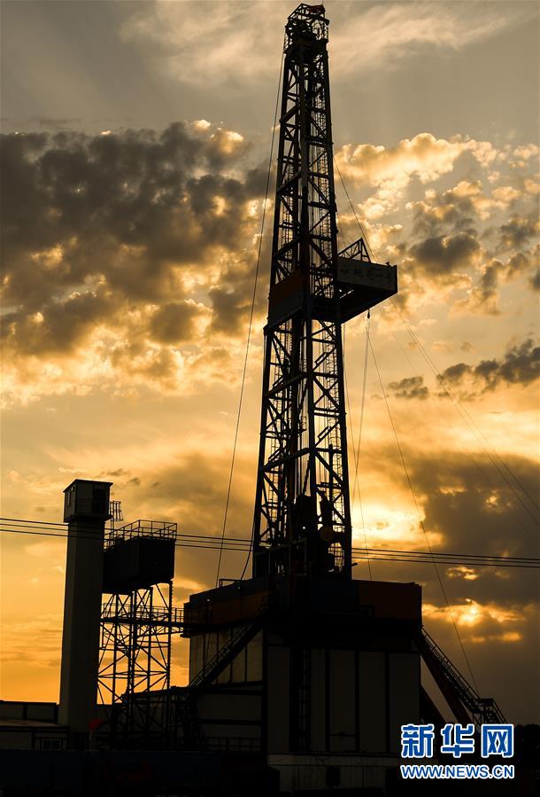 這是夕陽下的“地殼一號”萬米鉆機整機系統(6月1日攝)。