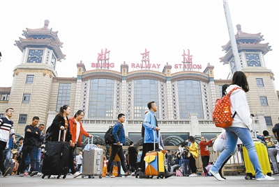 隨著國慶、中秋假期接近尾聲,北京迎來返程客流高峰。新華社發記者從中國鐵路總公司獲悉,9月28日國慶假期鐵路旅客運輸啟動以來,全國鐵路累計發送旅客1.05億人 ... [更多詳細]
