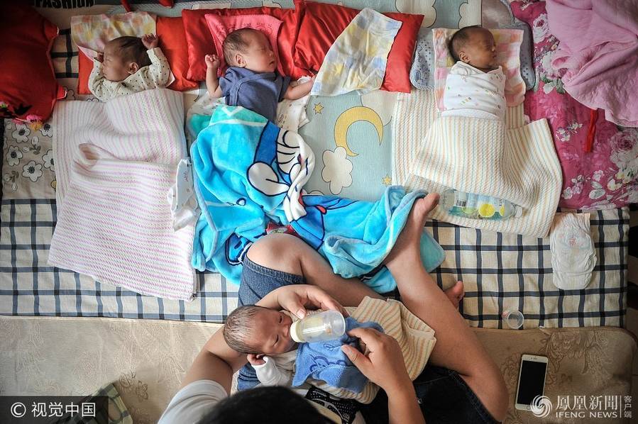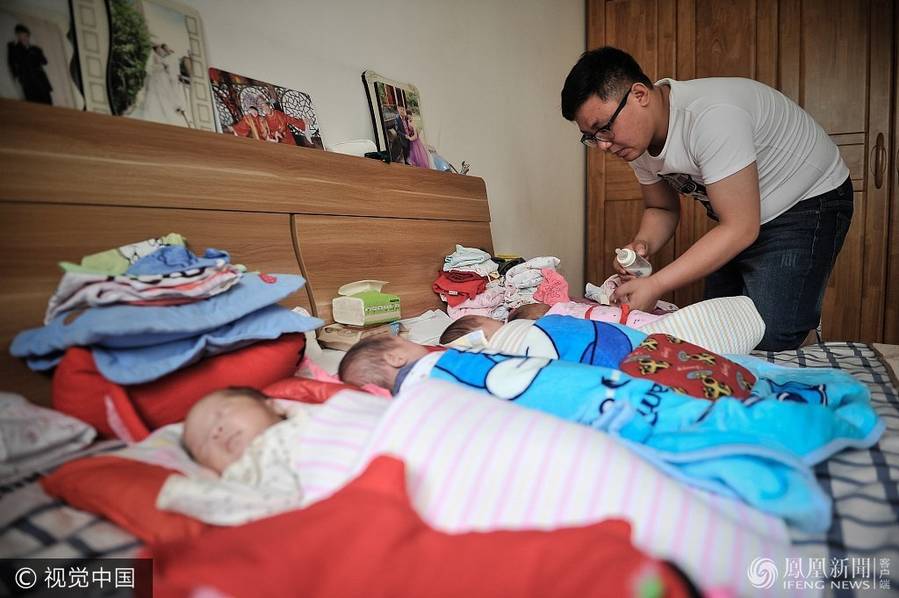 平時(shí)睡覺的時(shí)候,孩子們就像安靜的天使。然而一哭鬧起來,則會產(chǎn)生連鎖反應(yīng),一個接一個開始鬧,最后變成四重奏。“這種情況下,一個人都不知先顧哪個好。”劉陽無奈地說。家里的大人們一人哄一個寶寶,才能消停下來。在孩子出生之前,劉陽經(jīng)常跟發(fā)小出去玩,參加各種聚會,也愛玩游戲。