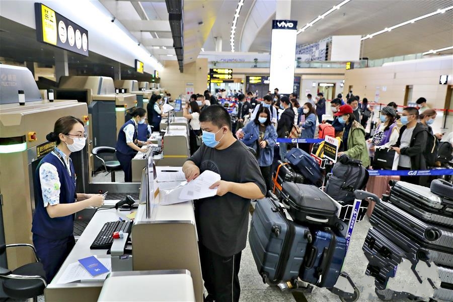 9月21日,乘坐赴英復學包機的留學生們在重慶江北國際機場航站樓內指定區域有序辦理值機手續。新華社發 (重慶機場集團供圖)9月21日,搭乘赴英復學包機海南航空 ... [更多詳細]
