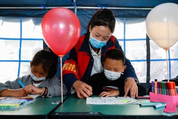 9月10日,在瀘定二中臨時安置點的&ldquo;帳篷課堂&rdquo;里,志愿者在教孩子手語游戲。   四川瀘定地震發生后,瀘定縣第二中學校成為臨時安置點,安置了 ... [更多詳細]