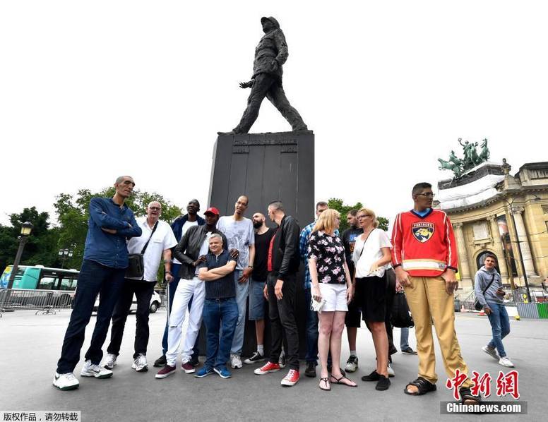 “巨人”們在戴高樂雕塑前合影。