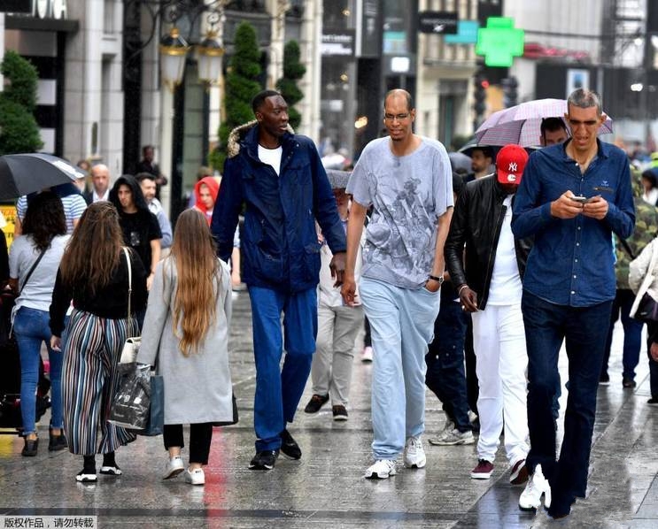 2018年6月4日消息,在巴黎香榭麗舍大街的人群中,身高2米35的 Dembele、2米46的Brahim Takioullah和2米33的Arshavir Grigoryan(從左至右)在人群中漫步。十幾個 ... [更多詳細]