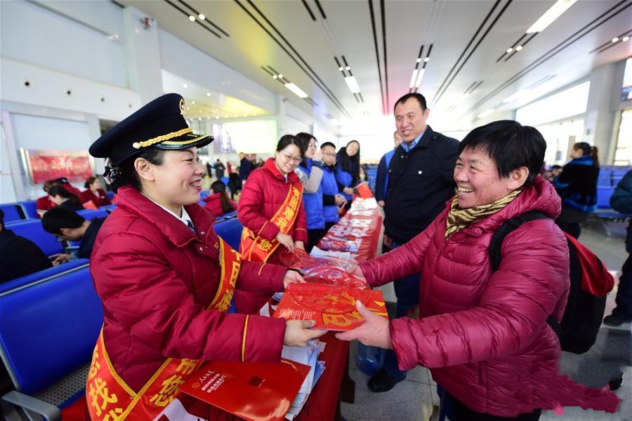 1月21日,在江西宜春火車站候車室,志愿者為一對(duì)雙胞胎姐妹送上一對(duì)金豬玩偶。 當(dāng)日,2019年春運(yùn)正式啟動(dòng)。 新華社發(fā)(鄒海斌 攝)   1月21日,在山東 ... [更多詳細(xì)]
