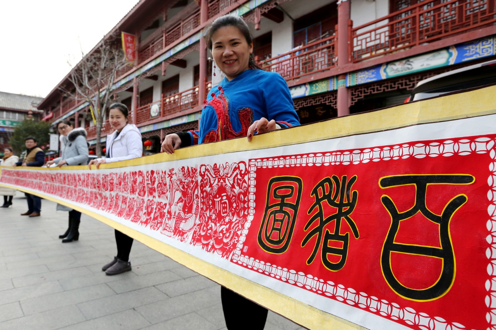 1月31日,山東滕州市民間剪紙藝人石紅霞在家中展示創(chuàng)作的&ldquo;百豬&rdquo;剪紙作品。春節(jié)將至,山東滕州市民間剪紙藝人石紅霞?xì)v時(shí)兩個(gè)多月,創(chuàng)作出一幅長(zhǎng)9米 ... [更多詳細(xì)]